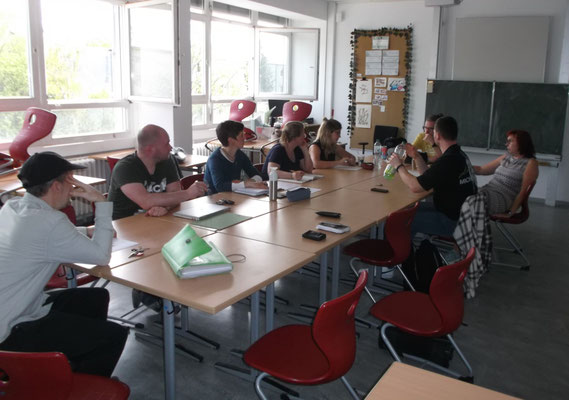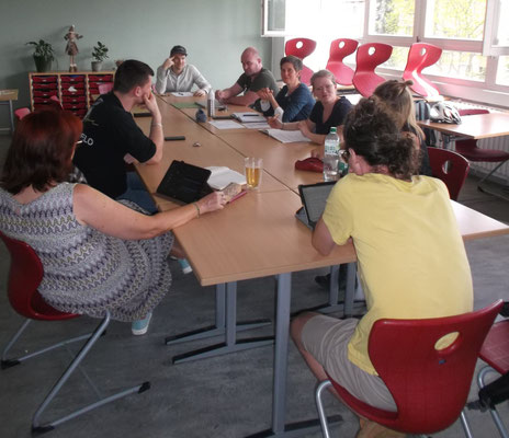 In der 28sten und 29sten Kalenderwoche fanden die Auswertungsgespräche mit den Künstlern Krzysztof Mianowski und Rubén González Escudero sowie den begleitenden Lehrkräften Alice Thoms (Fachbereichsleitung Kunst,