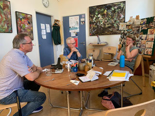 Am 14ten September 2021 fand die Beratung zum Fortgang des Theaterprojektes an der integrierten Röntgen Sekundarschule Statt. Teilgenommen haben Dr. Vera Dünkel, Christiane Urbanz, Michael Schmitz (auf der nebenstehenden Photographie von rechts nach links) und Paul A. Kleinert .